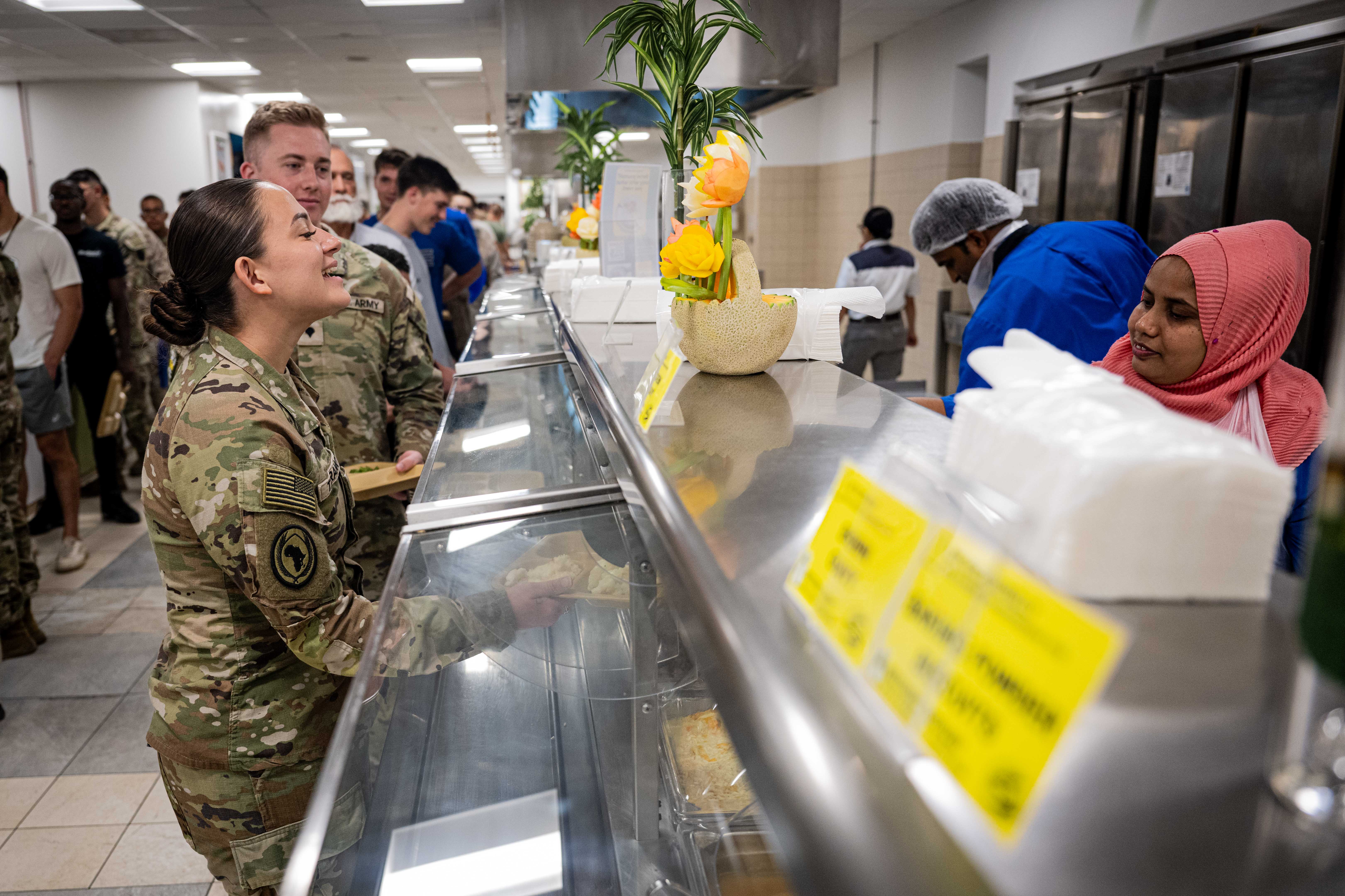 Operating for 22 hours each day, the dedicated staff at Doris Miller Galley provides exceptional support to approximately 36 tenant commands comprised of civilians, contractors and service members from every branch of the Department of Defense and partner nations as part of Combined Joint Task Force – Horn of Africa. In total, the patrons of the Camp Lemonnier Food Service operations are comprised of 50% Army, 25% Navy, 20% Marines, Air Force, Space Force and Coast Guard, 4% contractors and 1% foreign partners.