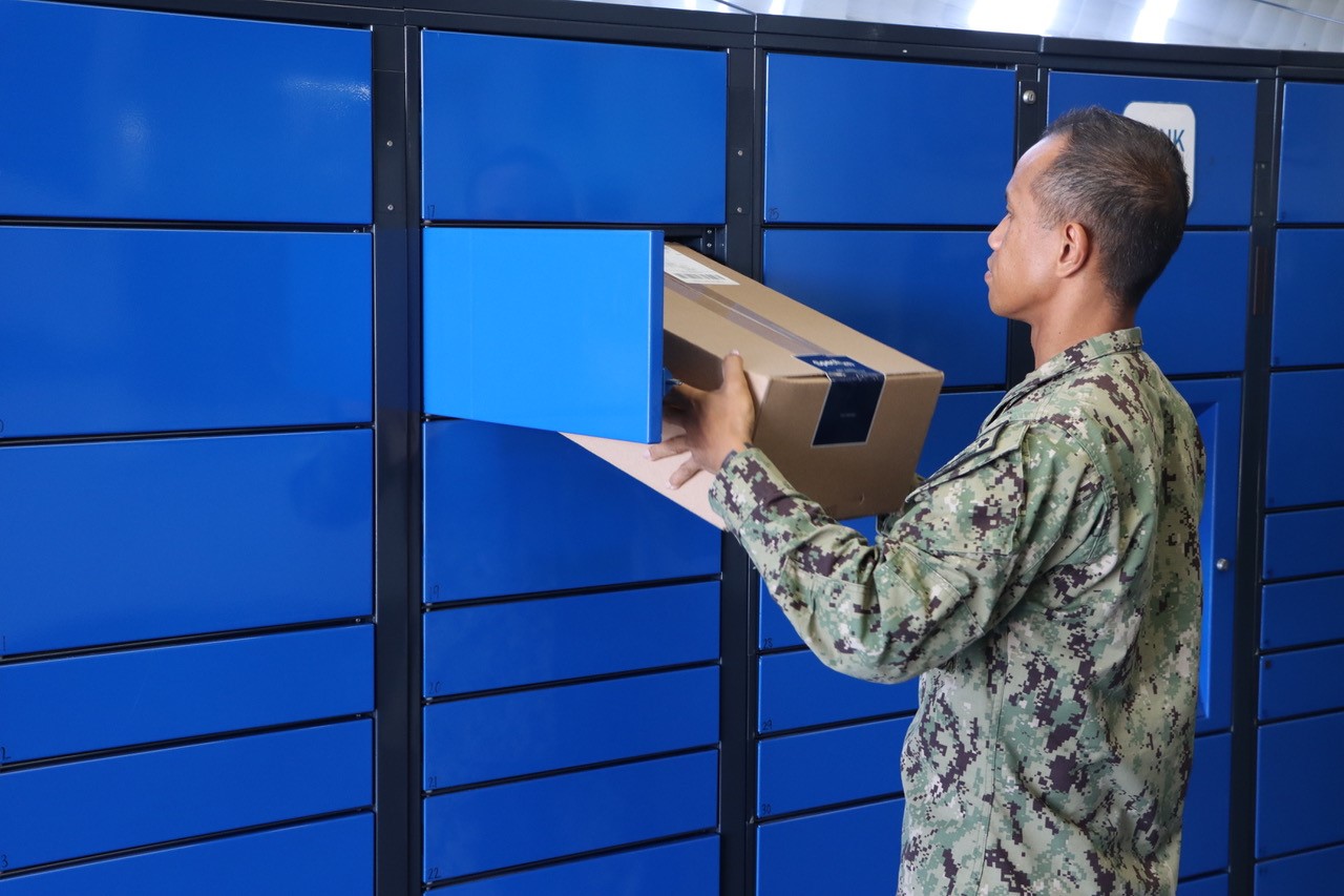 “I usually pick up packages after work, which means the window is closed,” said Hector Napoles, NAVSUP FLC Pearl Harbor Logistics Specialist Seaman Recruit. “With the mail lockers I don’t have to worry about the time, they are available 24/7. It’s nice to be able to walk in, skip the line at the window and use my phone to get my packages.”