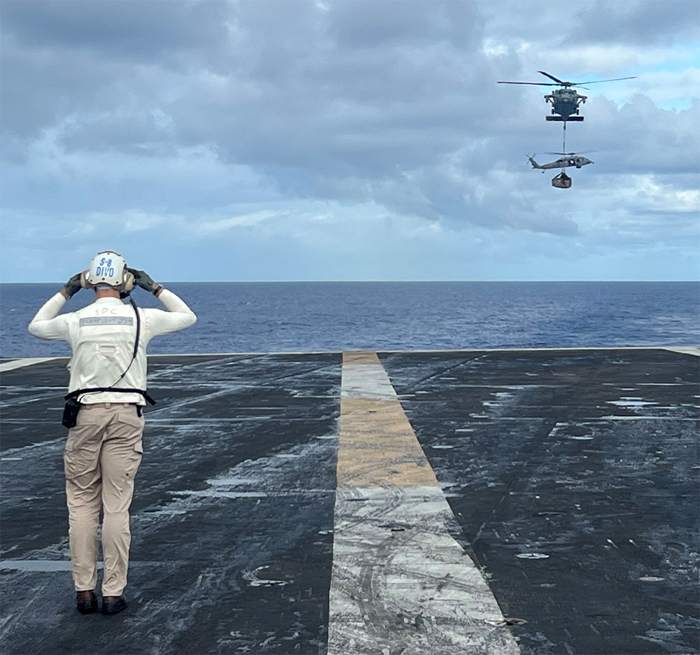International partners showcased their respective cultures during the BIG TOP Reception. LT Dearing from VINSON Supply team lead the charge in coordinating 14 country booths. Each booth exhibited unique food and drink selections and were hosted by partner nations: bruschetta from Italy, tacos from Mexico, and a fan favorite Saki from Japan. Nothing brings the world together like food! Guests enjoyed live music, remarks from RIMPAC leadership, tours of the flight deck, and hors devoirs in all three hangar bays. Want something a little closer to home? VINSON Supply took care of that, too. Not only did VINSON cater food for the event, the prominent display was the handmade carrier cake designed and created by the S-2 division. Sharing food together strengthens relationships like no-other; VINSON Supply provided the venue, food, and décor to foster these relationships.