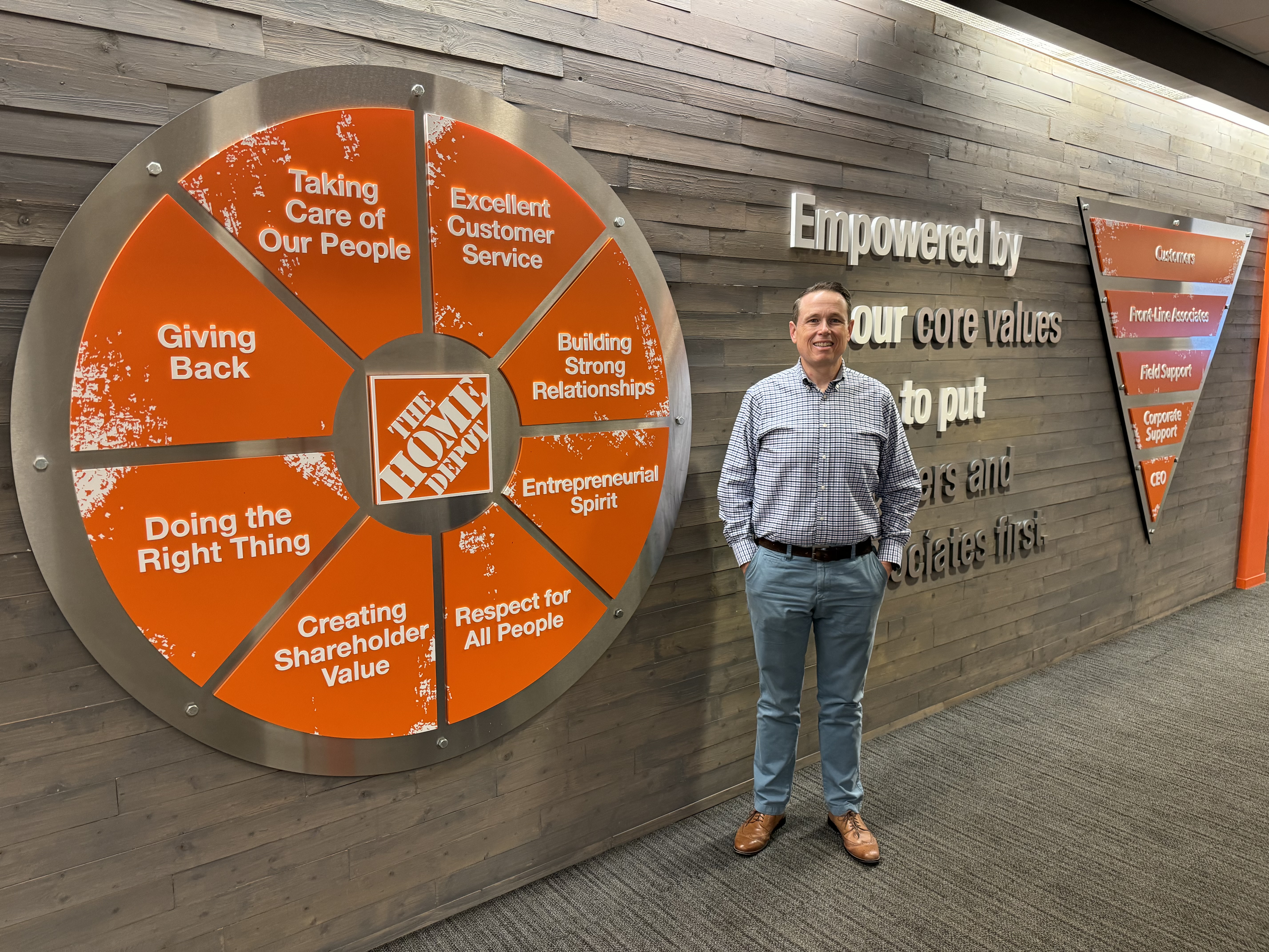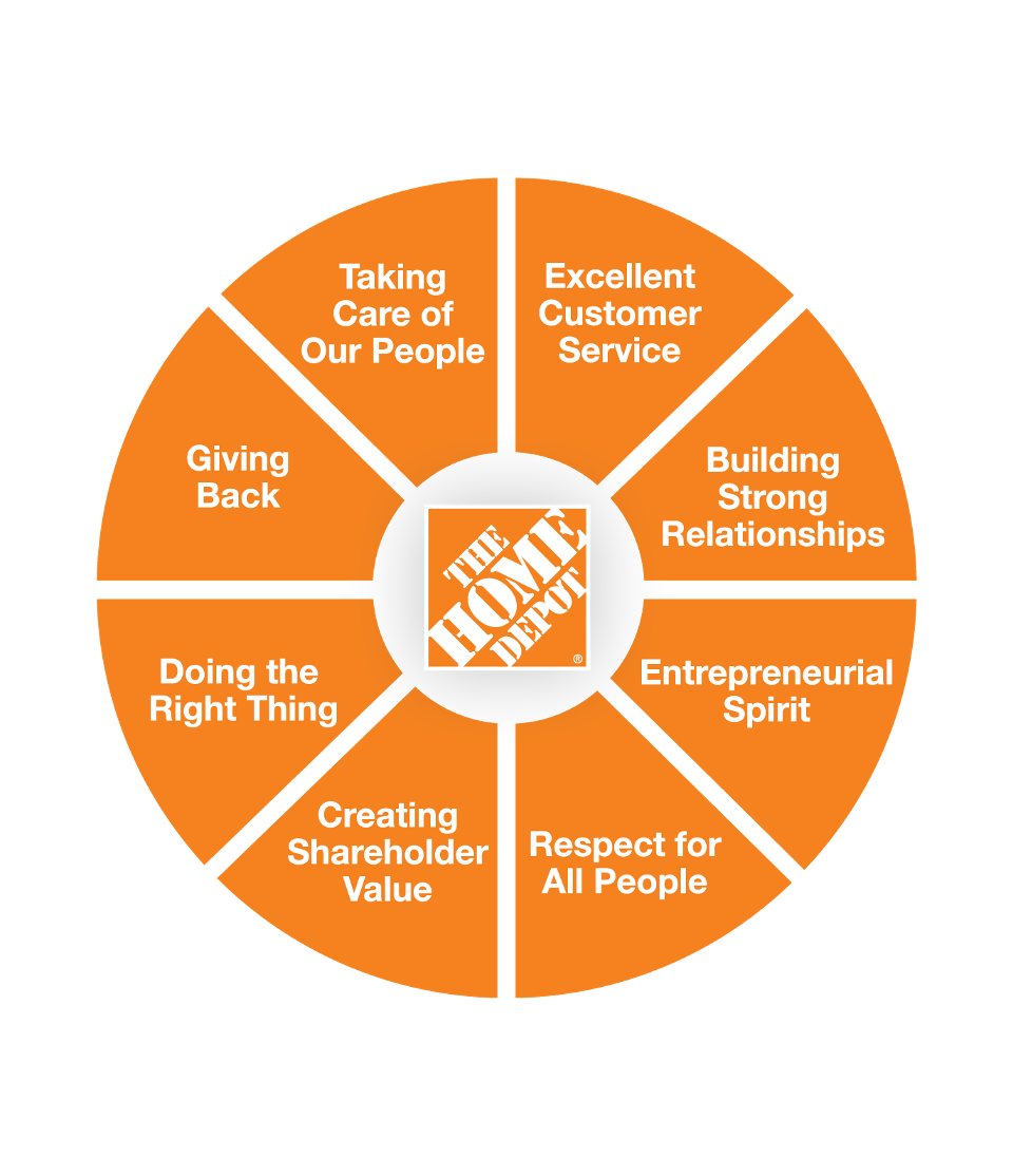 The Inverted Pyramid symbolizes Home Depot’s commitment to servant leadership, a principle that resonates deeply with military values like “Officers Eat Last.” This concept places the front-line associates at the top, with leadership at the bottom, emphasizing the importance of supporting those who are on the front lines. The Values Wheel, created by THD’s founders, encapsulates timeless principles that echo our Navy core values of honor, courage, and commitment. These cultural synergies make Home Depot an ideal company for a Supply Corps officer to embed with, particularly given their highly dynamic and complex supply chain operations.
